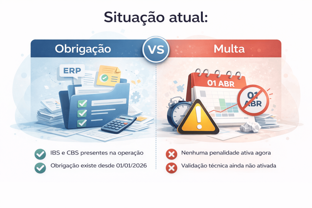 Importante: A ausência de penalidade neste momento não elimina a obrigação. Empresas que não se prepararem agora podem enfrentar ajustes urgentes quando a validação for ativada.